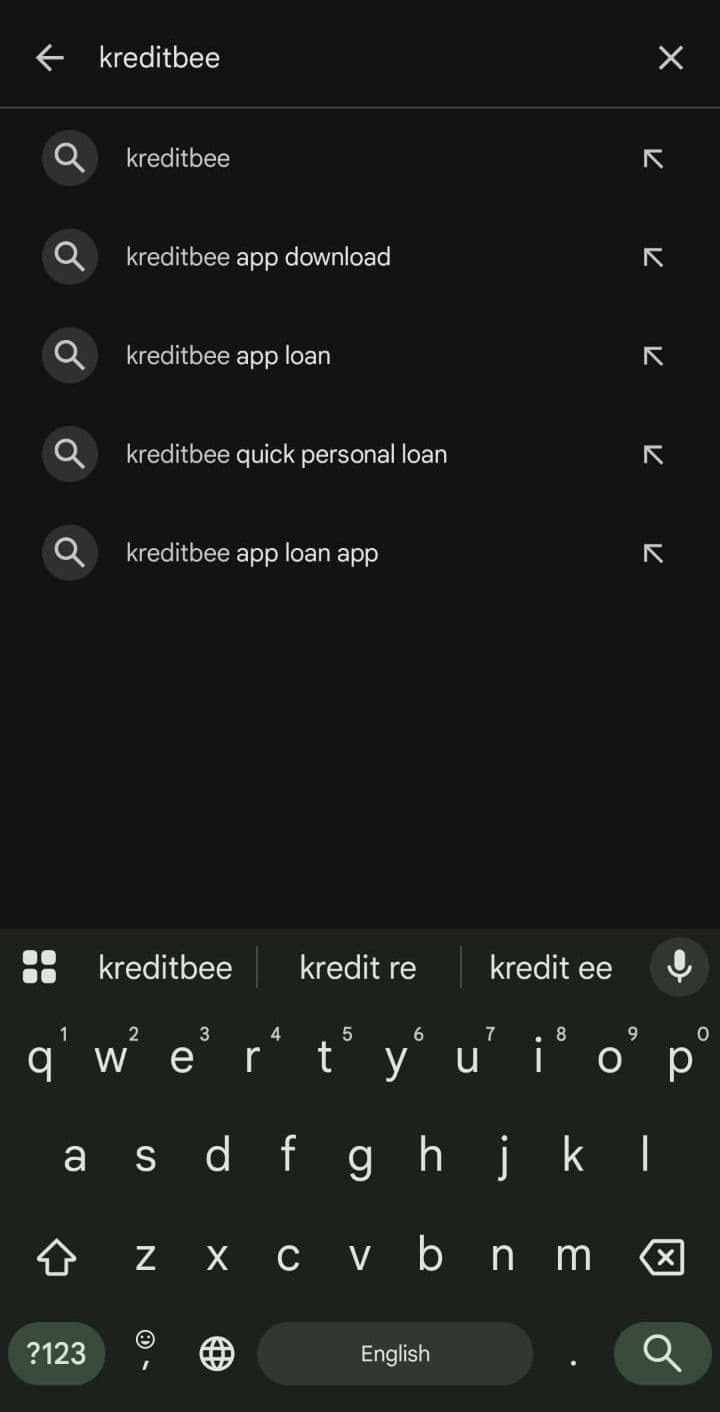 - Now search “kreditBee” in the search bar and download the app.