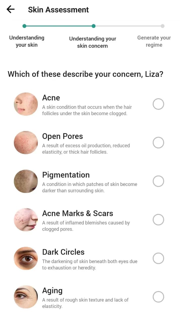 - You get an assessment tool on the app by which you can choose the right products based on your skin.